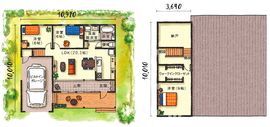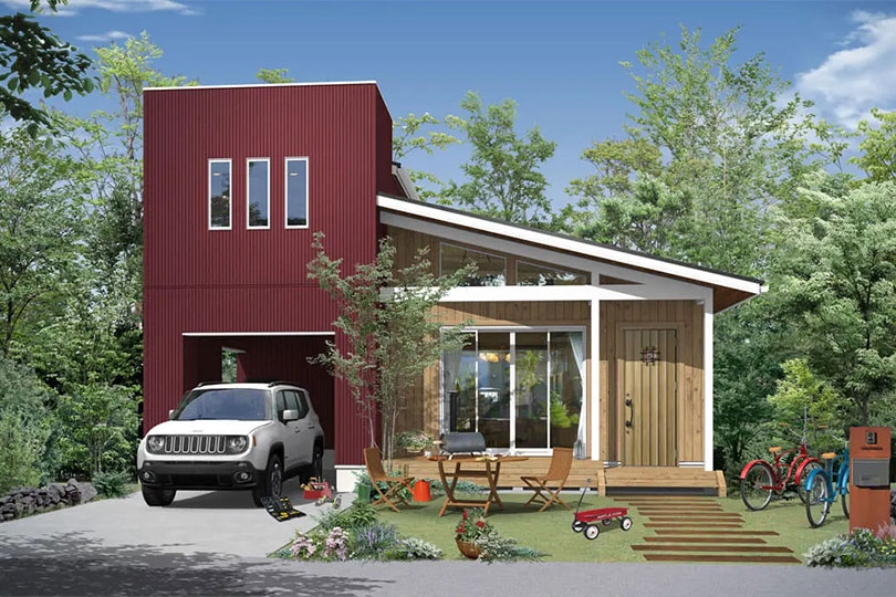 木の外壁は、使い続けて年数を経るごとに味わいのある表情、独特の重厚感を引き出してくれます。お仕着せのインテリアや、コギレイだけの家はもういらない というあなたへ。本当の暮らしの楽しみを教えてくれるプランです。