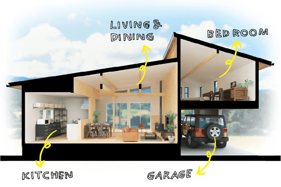 ハック・ベースは、ライフステージや好みの変化に合わせて進化できる住まいです。家族とともに成長し、住むほどに味わいが増していく長く愛せる木の家です。