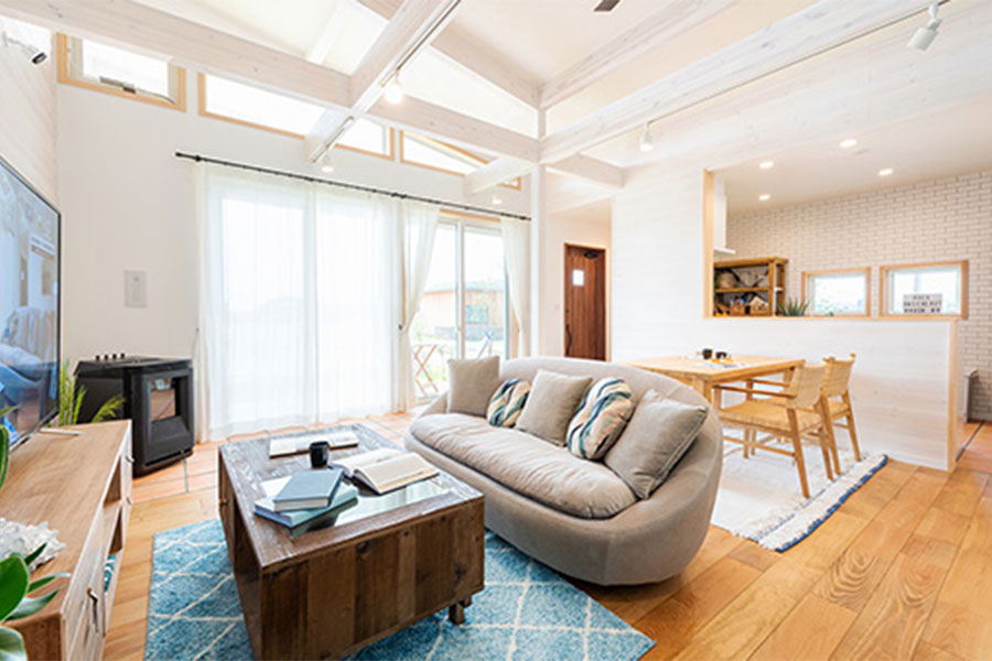 潮風を感じるカリフォルニアスタイルの住まいでおうち時間を最高に楽しむ暮らし。海辺の日差しを感じるその佇まい、仕切りのないリビングダイニング、窓を開け放てばオープンエアリビングとの一体感が生まれ開放的な空間が広がります。