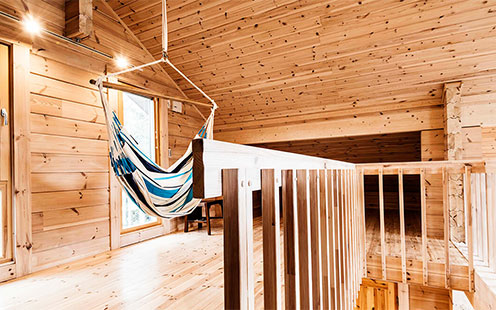 ログハウスの本場は北欧なので、今でも多くのメーカーがログ材を北欧から輸入していますが、HUCK LOGでは経済性よりも持続可能性を優先事項と考え、国産ログ材を採用したログハウスとしています。国産材を採用することで、日本の林業普及維持にも貢献したいと考えています。